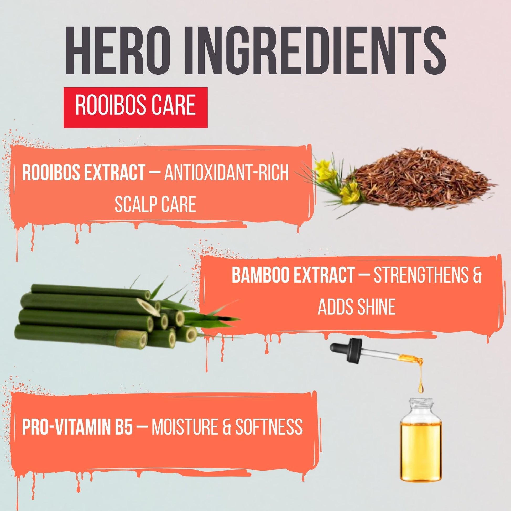 The HK Rooibos Shampoo provides a sulphate-free cleanse that purifies the scalp and hair without stripping essential natural oils. Enriched with Rooibos extract, bamboo, and natural botanicals, it gently removes impurities, excess oil, and daily build-up while soothing irritation and restoring scalp balance. The antioxidant power of Rooibos helps protect hair from environmental stress and premature ageing, while strengthening fragile strands for improved resilience.