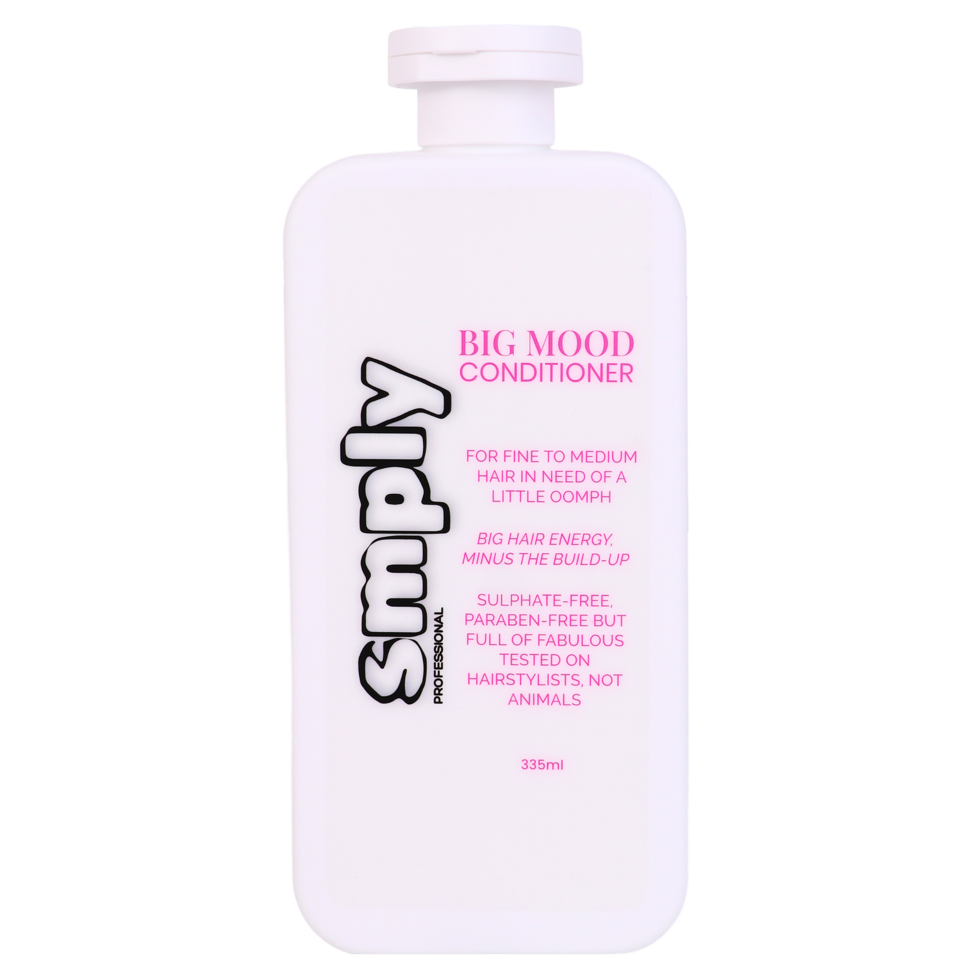 Conditioner, but make it featherlight. Smply Big Mood Conditioner delivers just the right dose of hydration and shine without flattening your style. Designed for fine to medium hair types, it adds smoothness, softness, and a little va-va-voom — all while staying blissfully weightless.